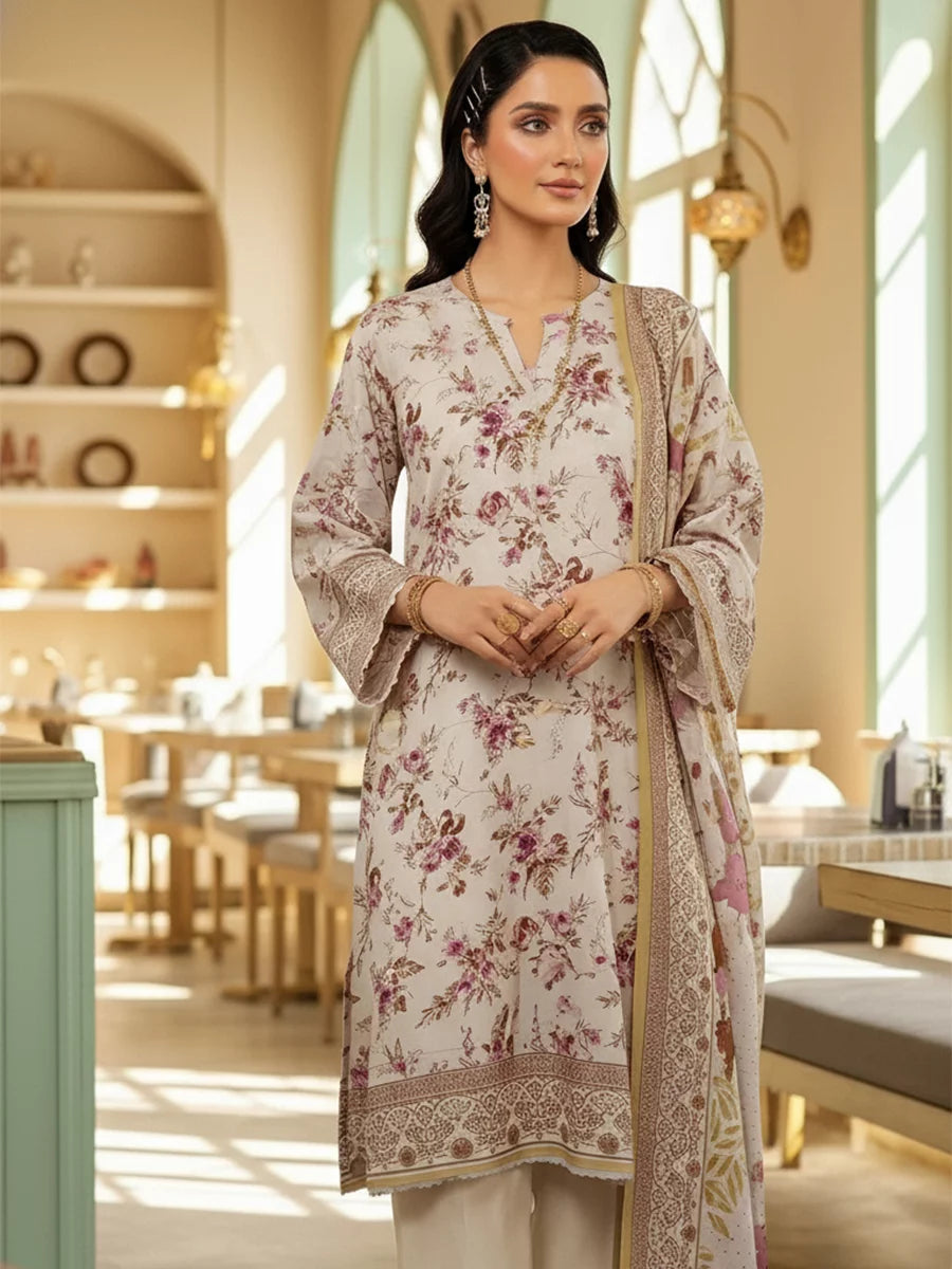 3pc Unstitched Digital Printed & Embroidered Lawn Suit (WUS3BS24IZ004-A)