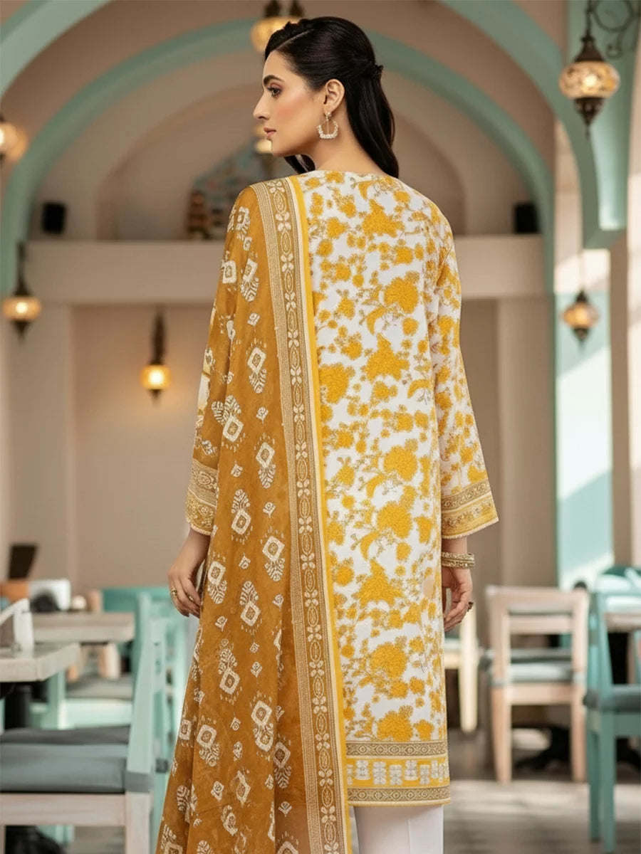 3PC Stitched Printed Lawn Silk Suit (SUNS7ASI179)