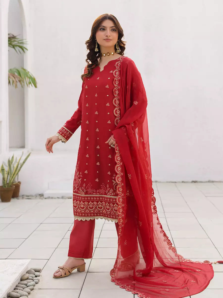 3PC FESTIVE CHIFFON EMBROIDERED SUIT (UNW24CH003-A)