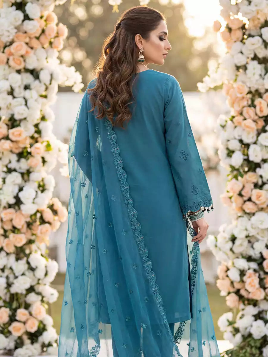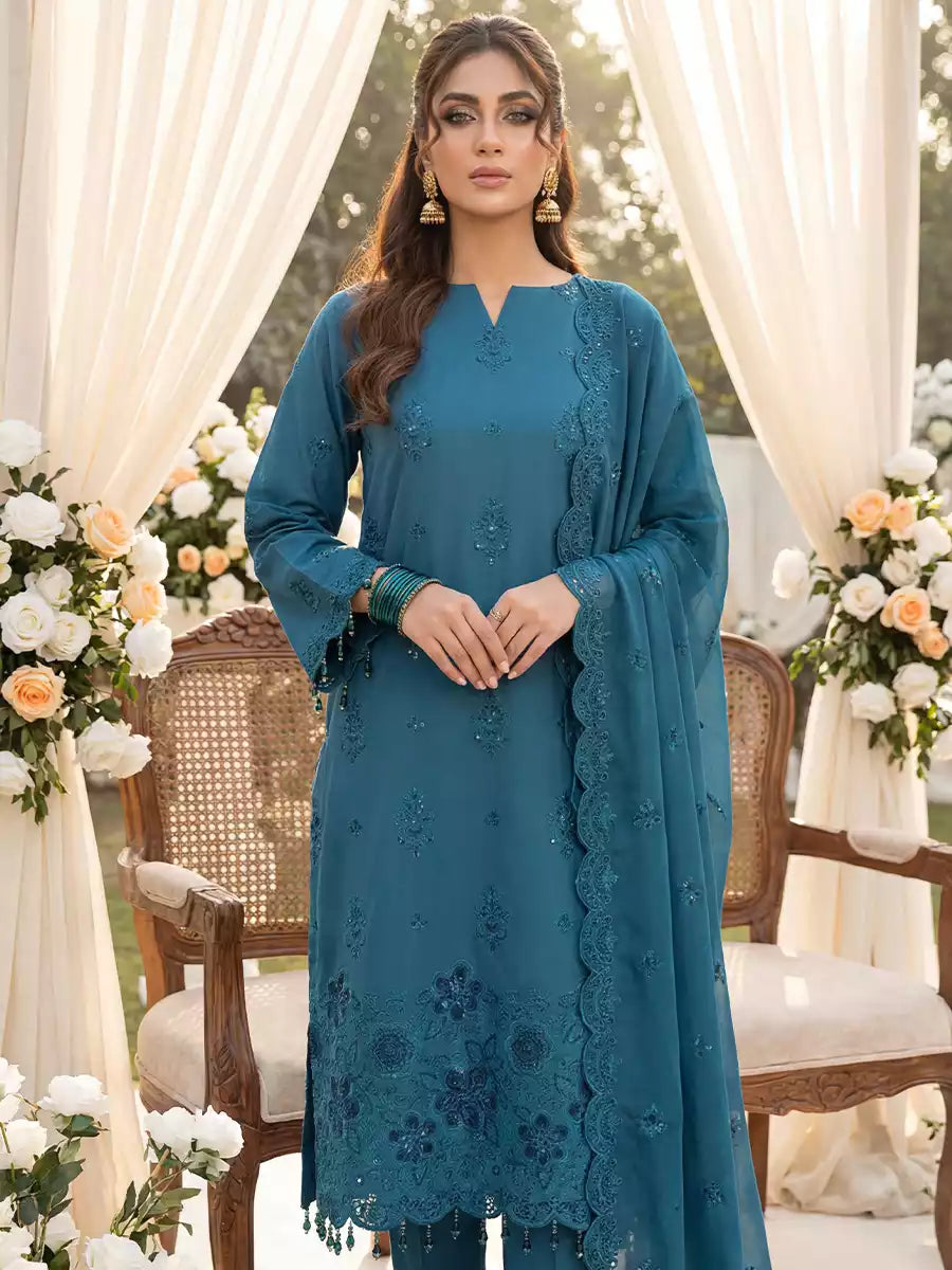 Azure Blue-Unstitched 3pc Heavy Embroidered Luxury Chiffon Suit (HC-00007)