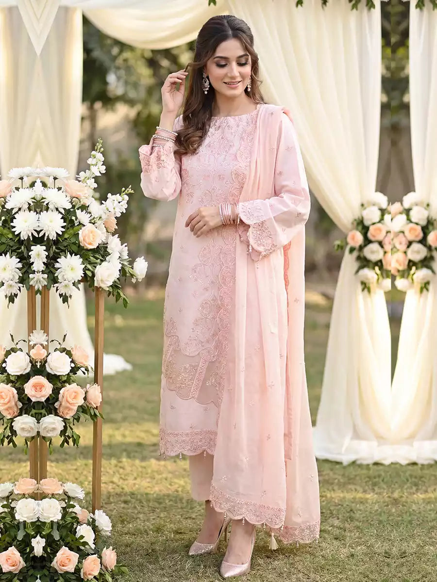 3PC Stitched Cambric Embroidered Suit (PML3PBC289)