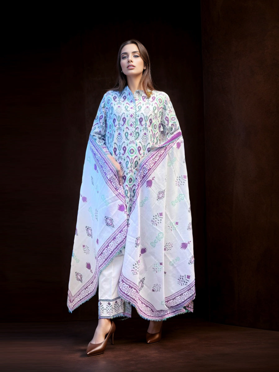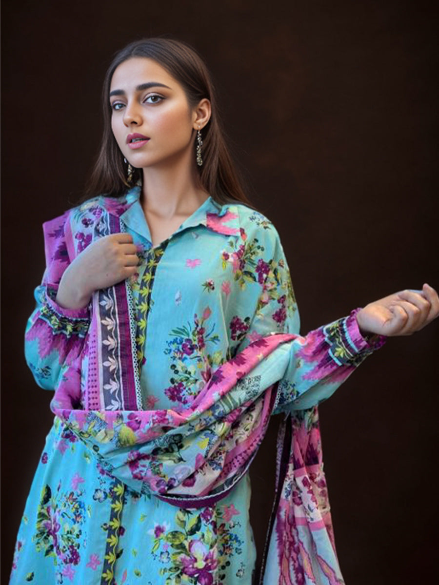 3PC Stitched Printed Lawn Silk Suit (ASI110)