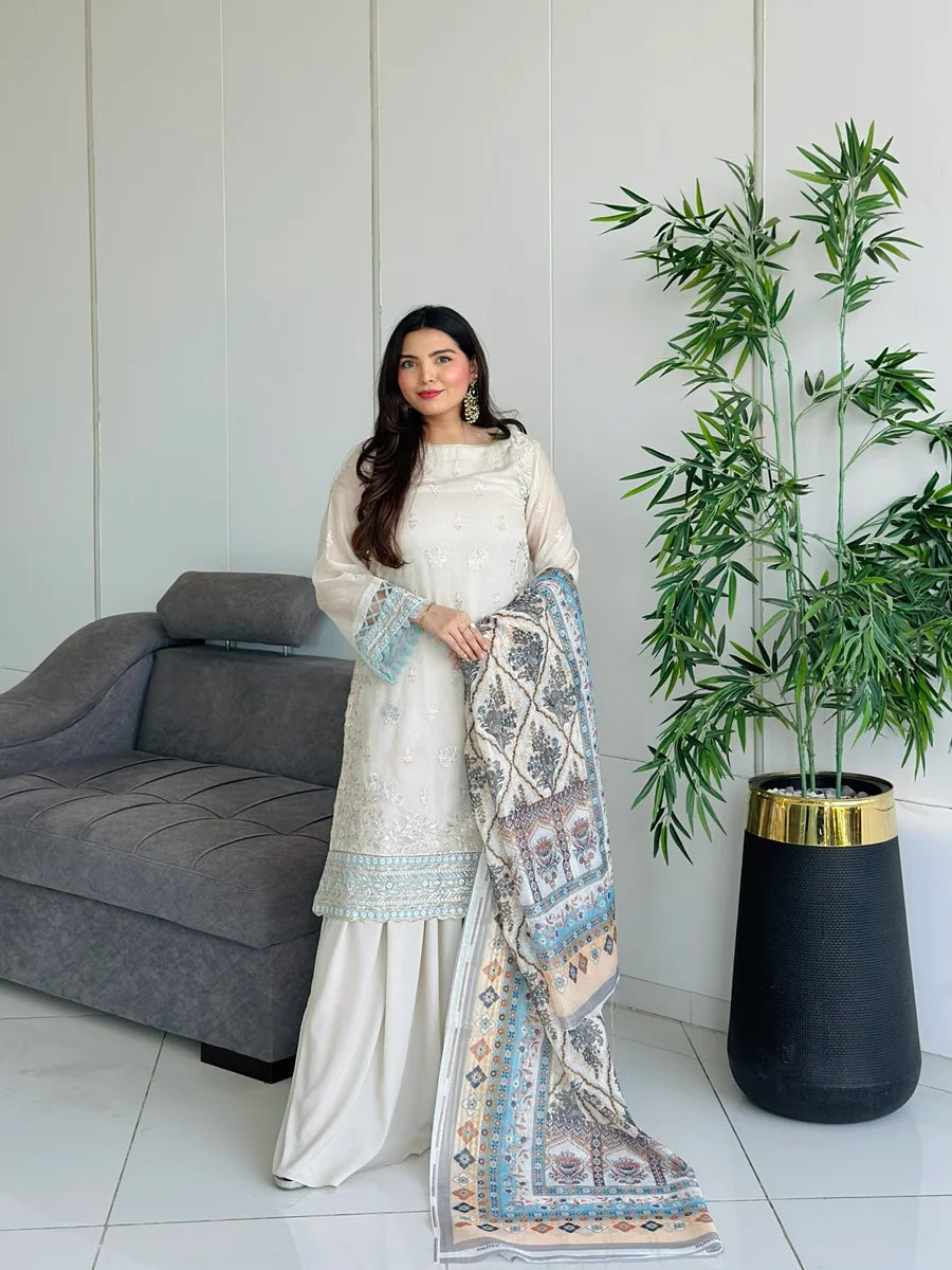 3PC Unstitched Festive Embroidered Suit (SUNW7JI075)
