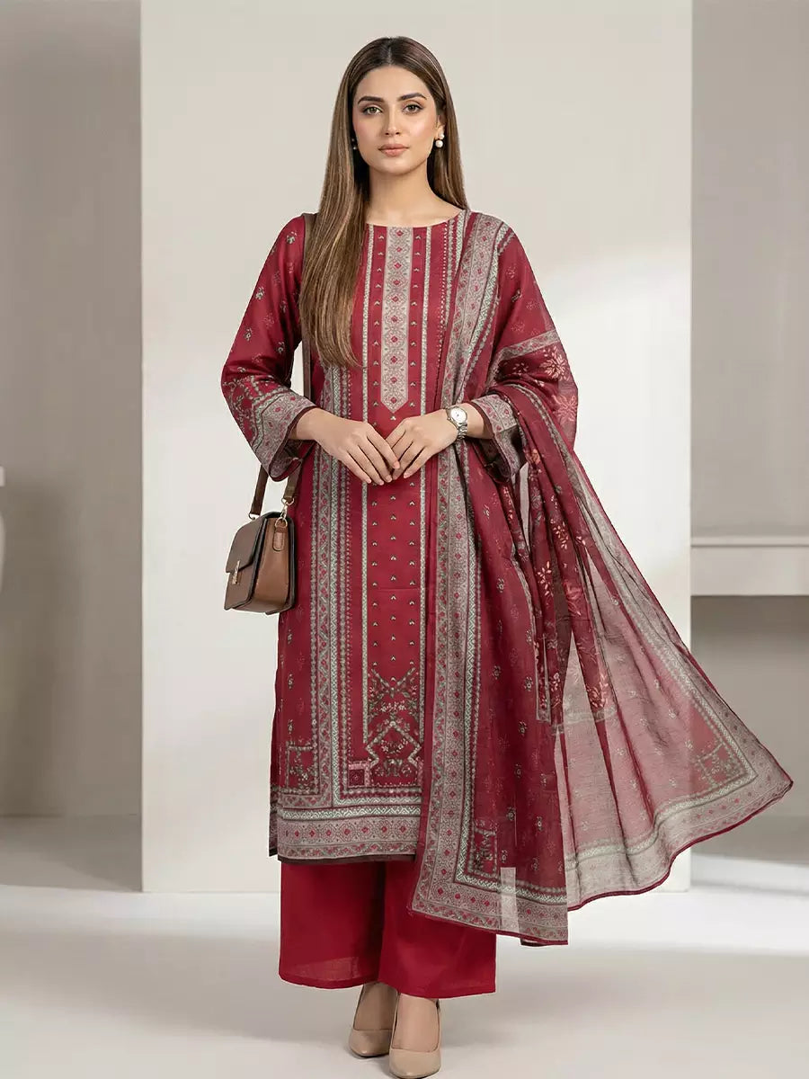 3Pc Chunri Unstitched Lawn Printed Suit (SSW6U3P261)