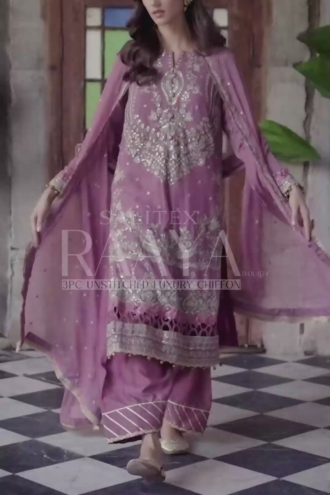 3PC FESTIVE STITCHED CHIFFON EMBROIDERED SUIT