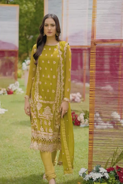 3PC STITCHED FESTIVE CHIFFON EMBROIDERED SUIT