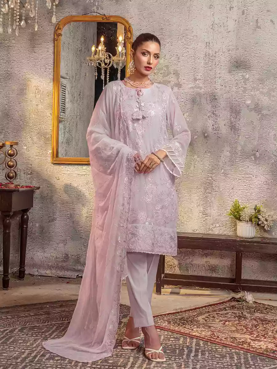3PC Unstitched Chiffon Embroidered Suit (SUNW7CH085)