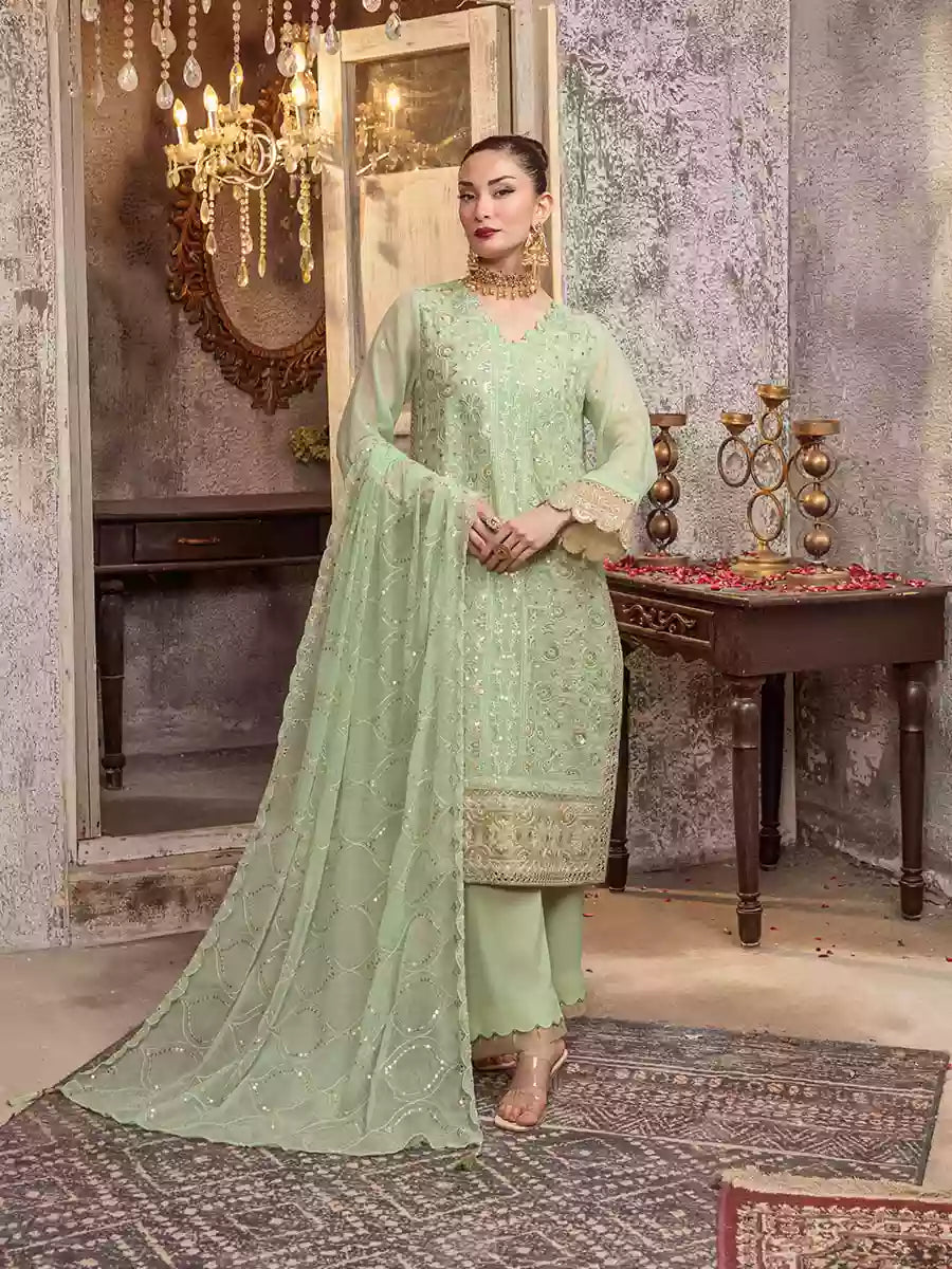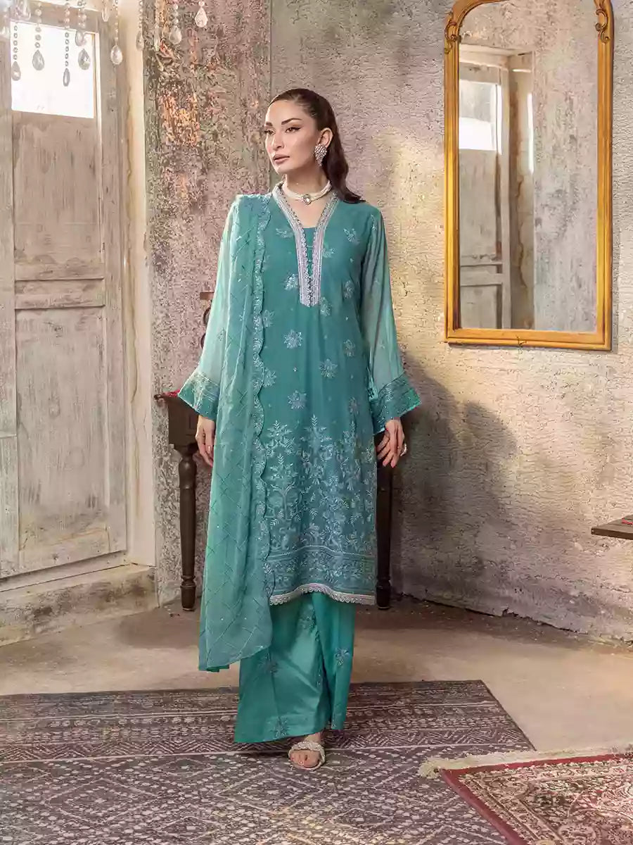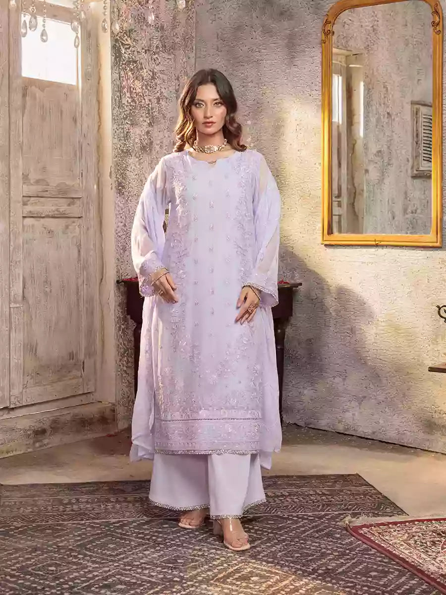 3PC Unstitched Chiffon Embroidered Suit (SUNW7CH084)
