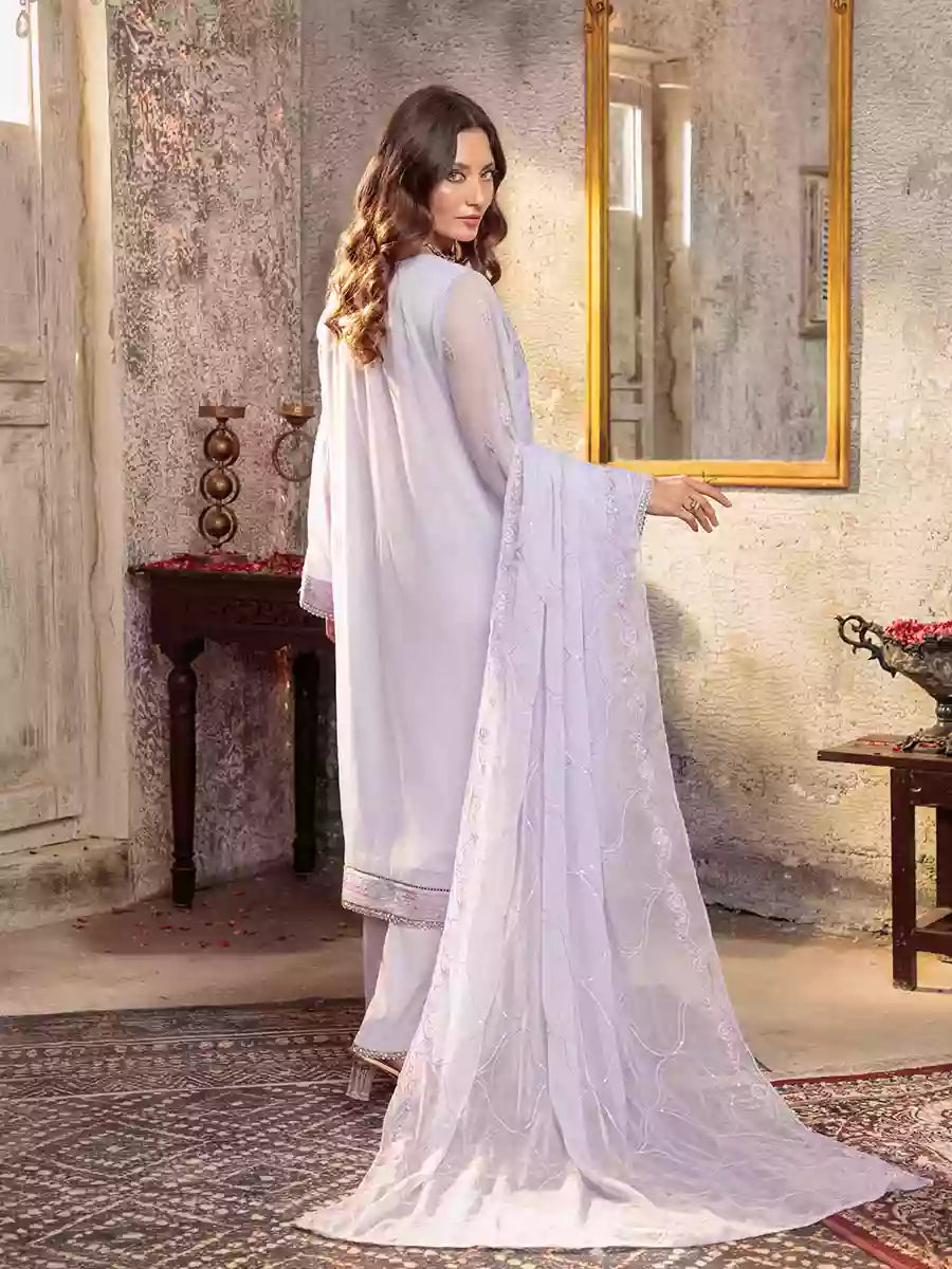 3PC Unstitched Chiffon Embroidered Suit (SUNW7CH078)