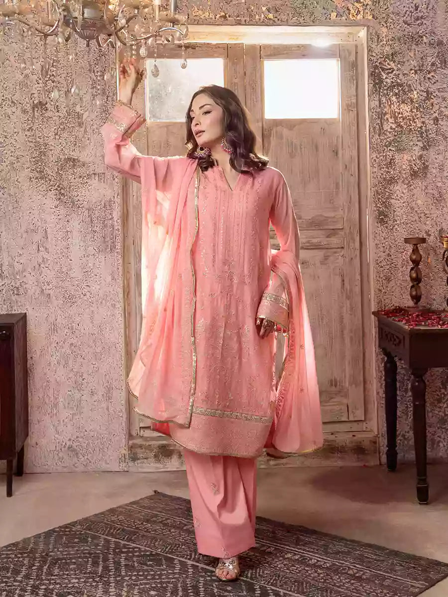 3PC Unstitched Chiffon Embroidered Suit (SUNW7CH095)