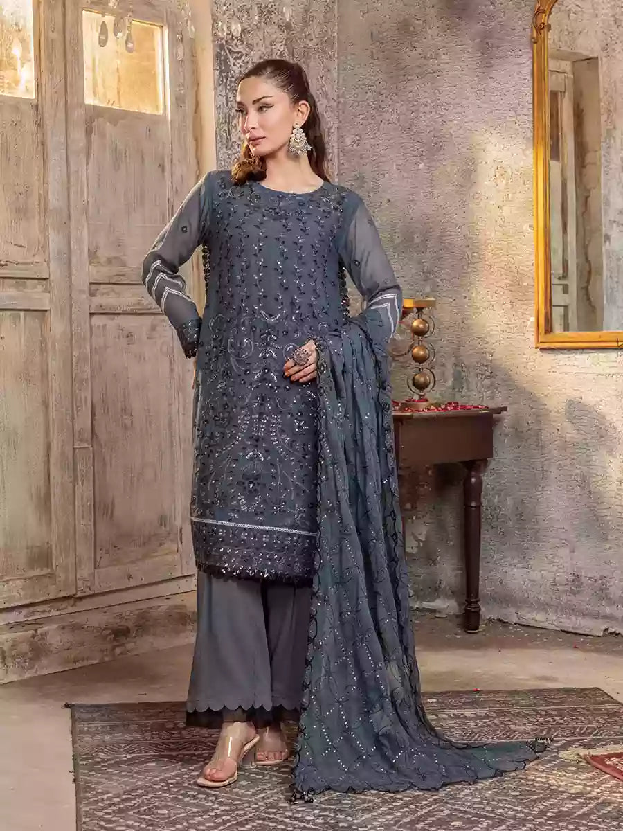 3PC Unstitched Chiffon Embroidered Suit (CH058)
