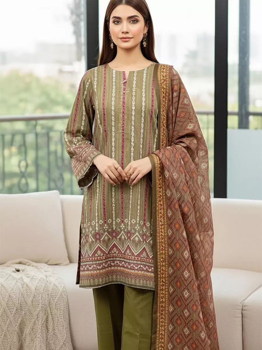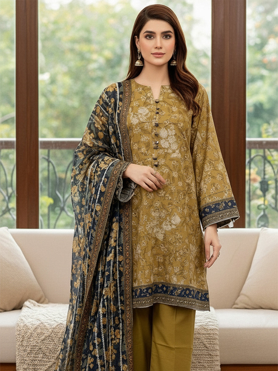 3PC Unstitched Khaddar Printed Suit (SUNS7ASI512)