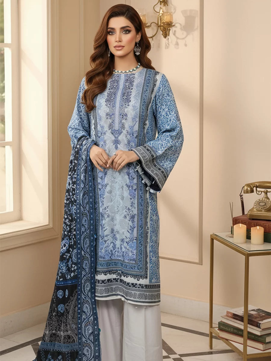 3PC Unstitched Printed Silk Lawn Suit (SUNS7ASI308)