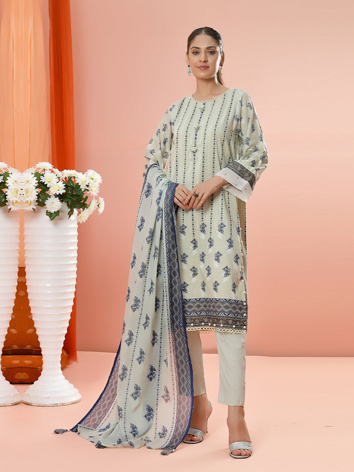 3PC Unstitched Embriodered Lawn Printed Suit