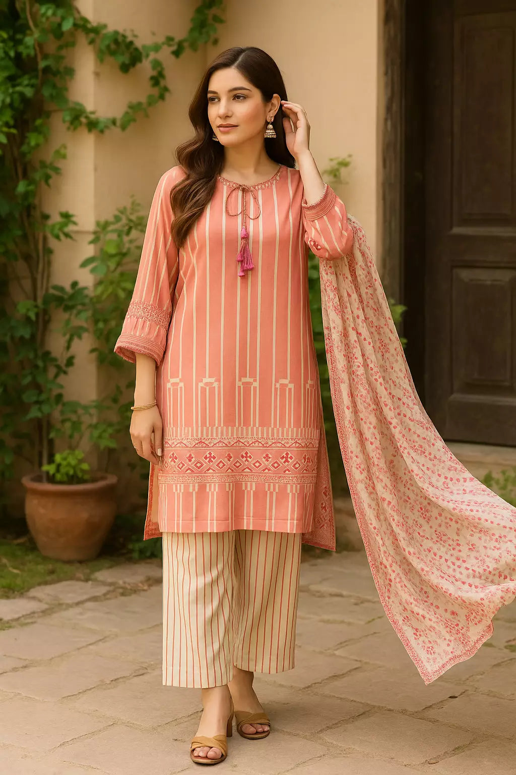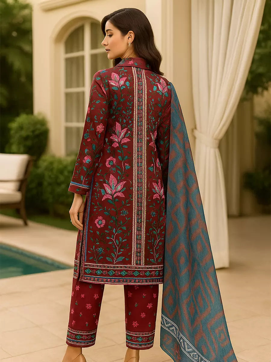 3PC Unstitched Lawn Embroidered Suit (ABW013)
