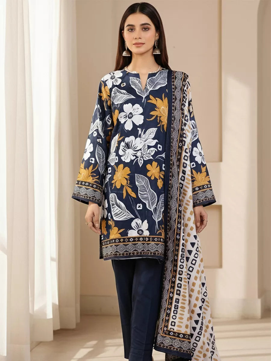 3PC Unstitched Khaddar Printed Suit (SUNS7ASI512)