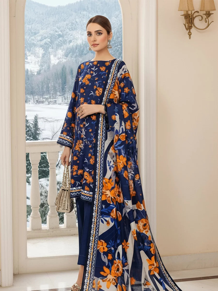 3PC Unstitched Printed Khaddar Suit (SUNS7ASI230)