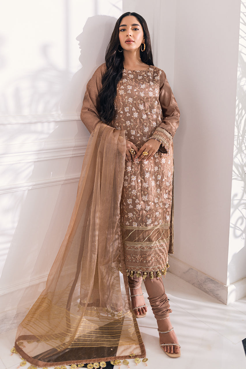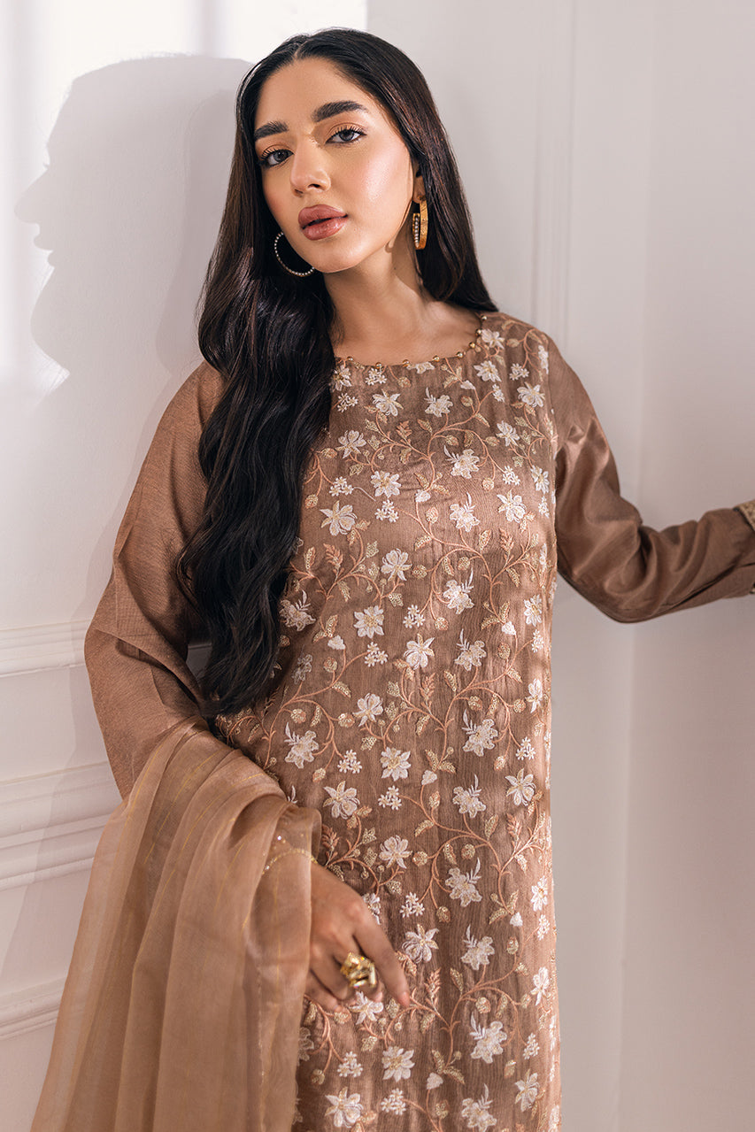 Adorna - Unstitched 3pc - Full Embroidered Chiffon Shirt & Embroidered Chiffon Dupatta with Dyed Raw Silk Trouser - (HC-00014UT) - SalitexOnline
