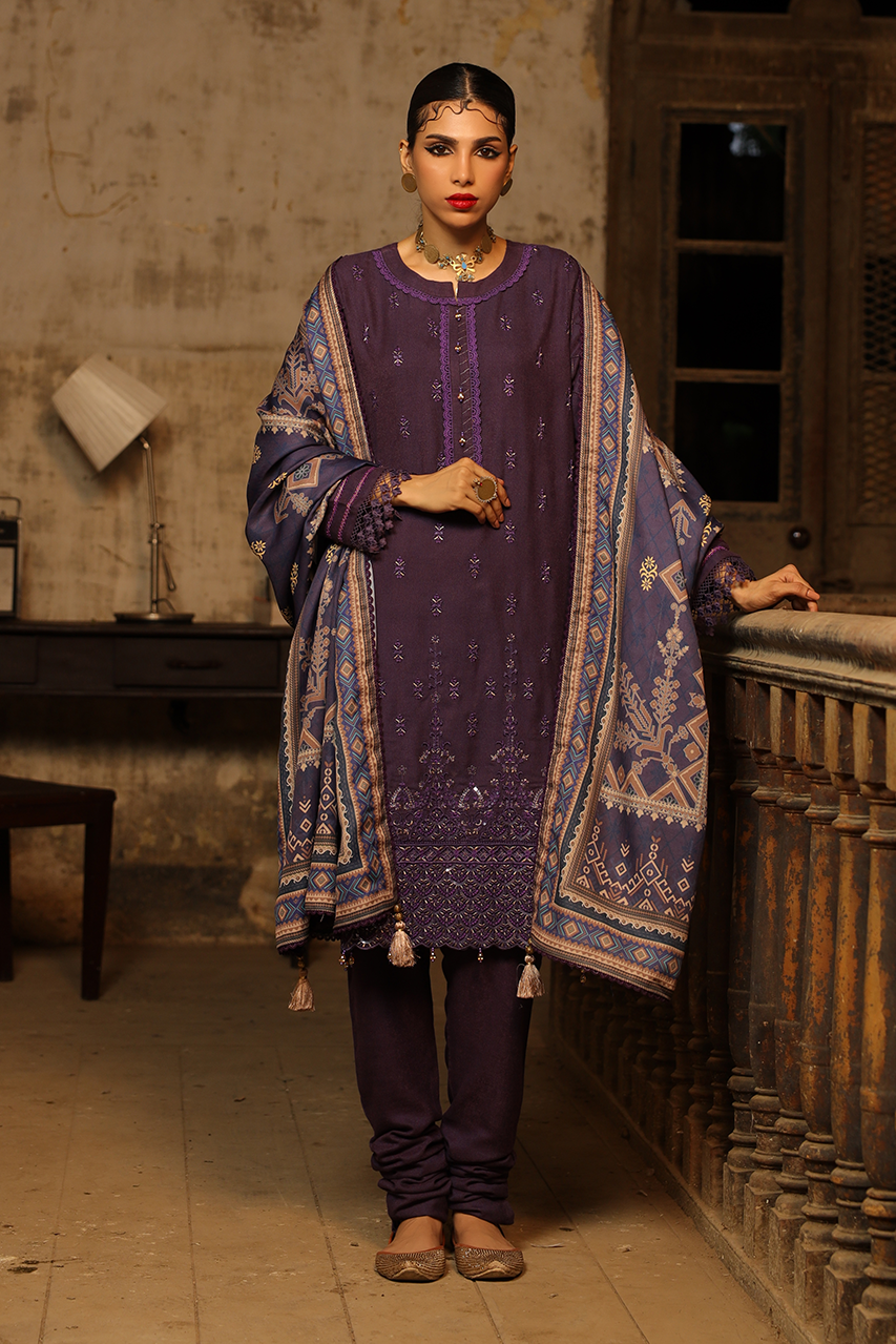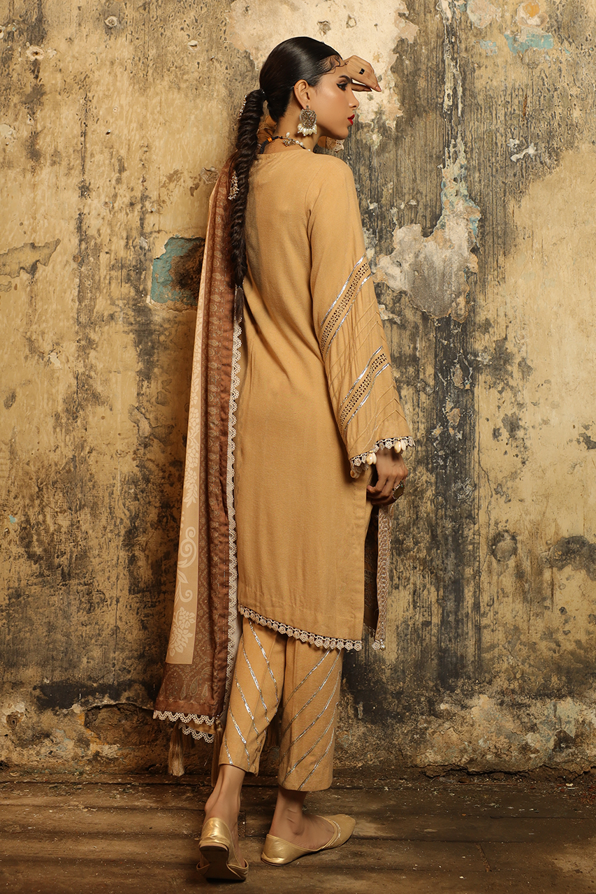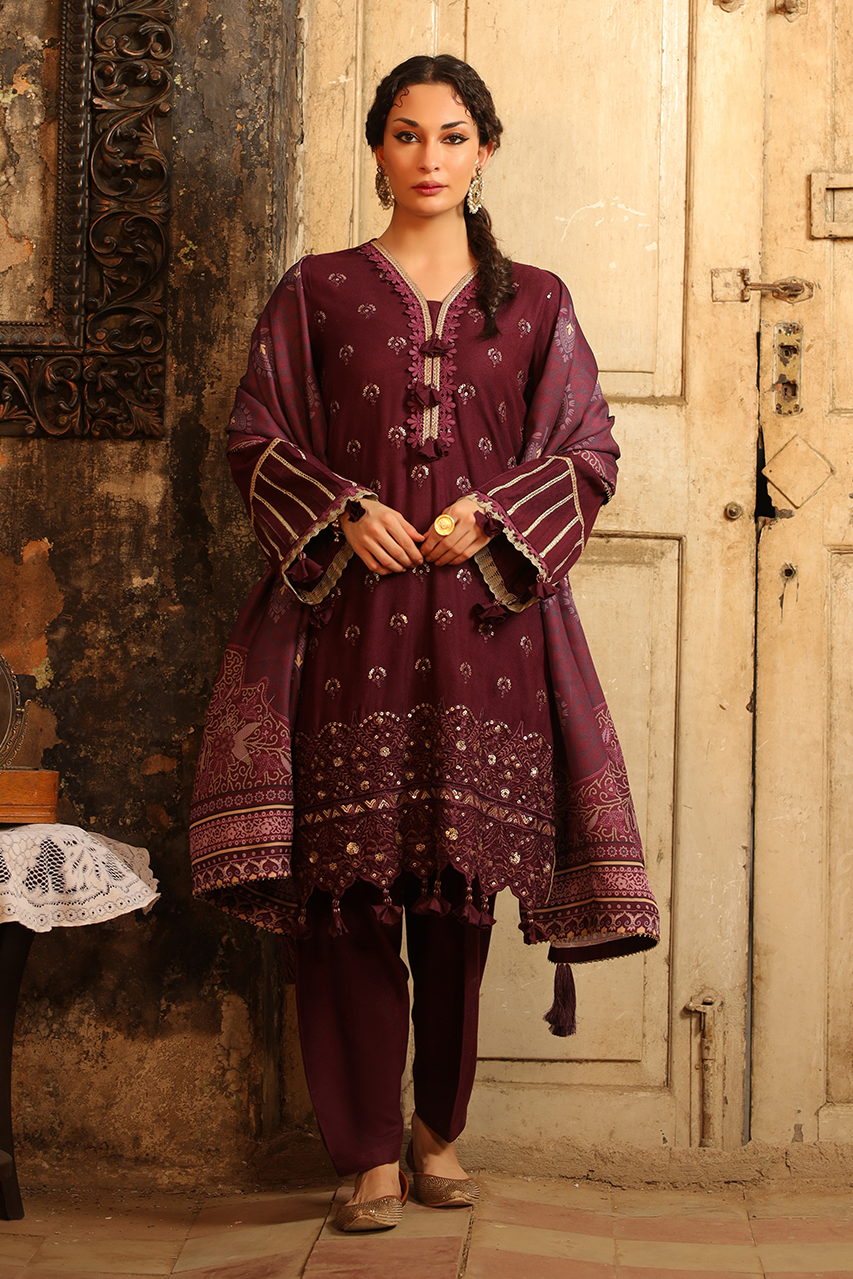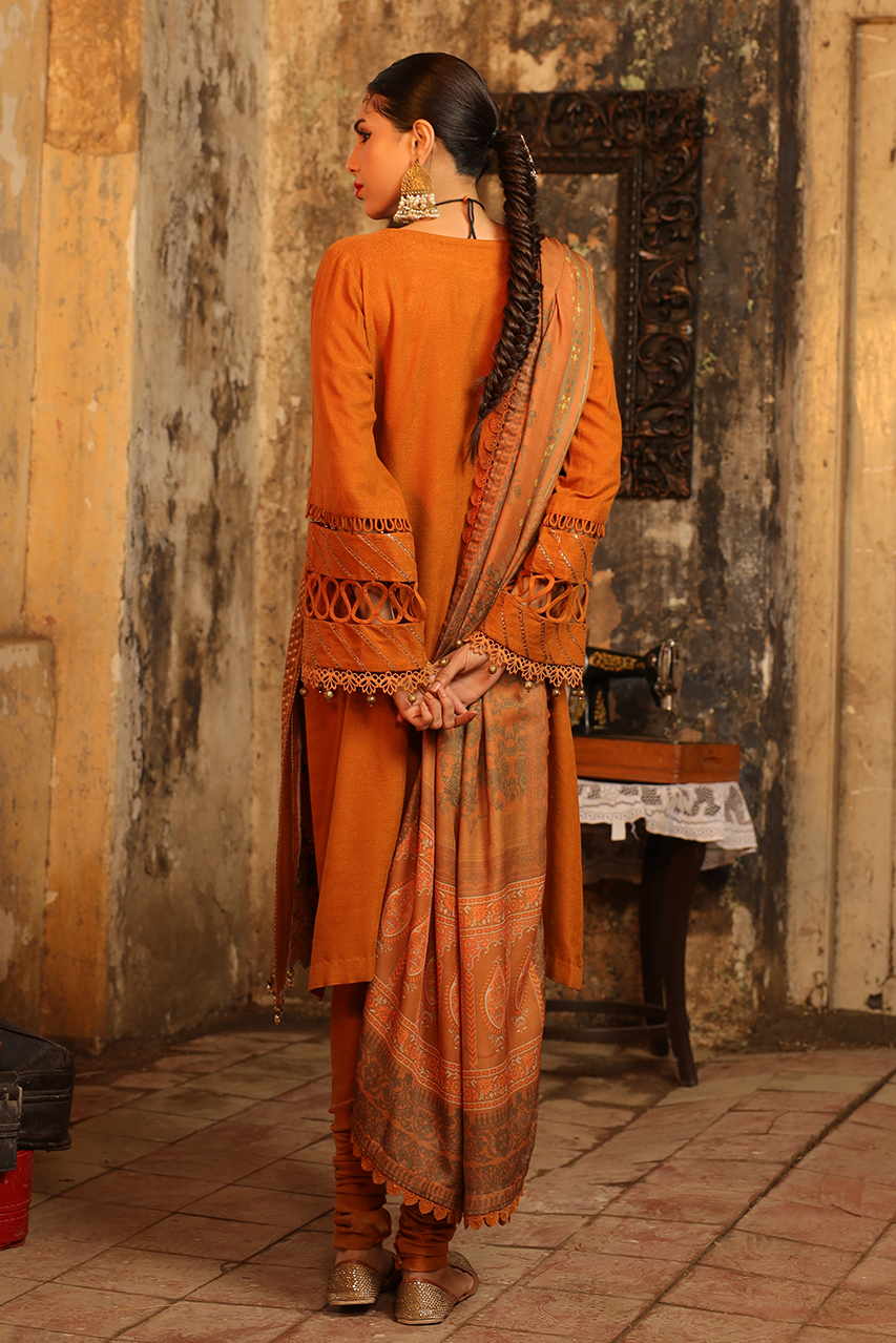 3pc Unstitched Winter Embroidered Suit With Shawl Peach Leather (PLEMB-08UT) - SalitexOnline
