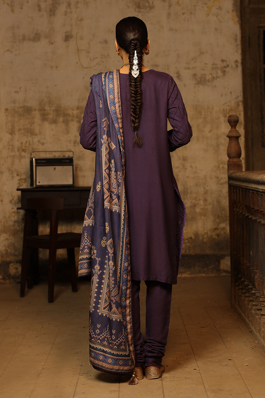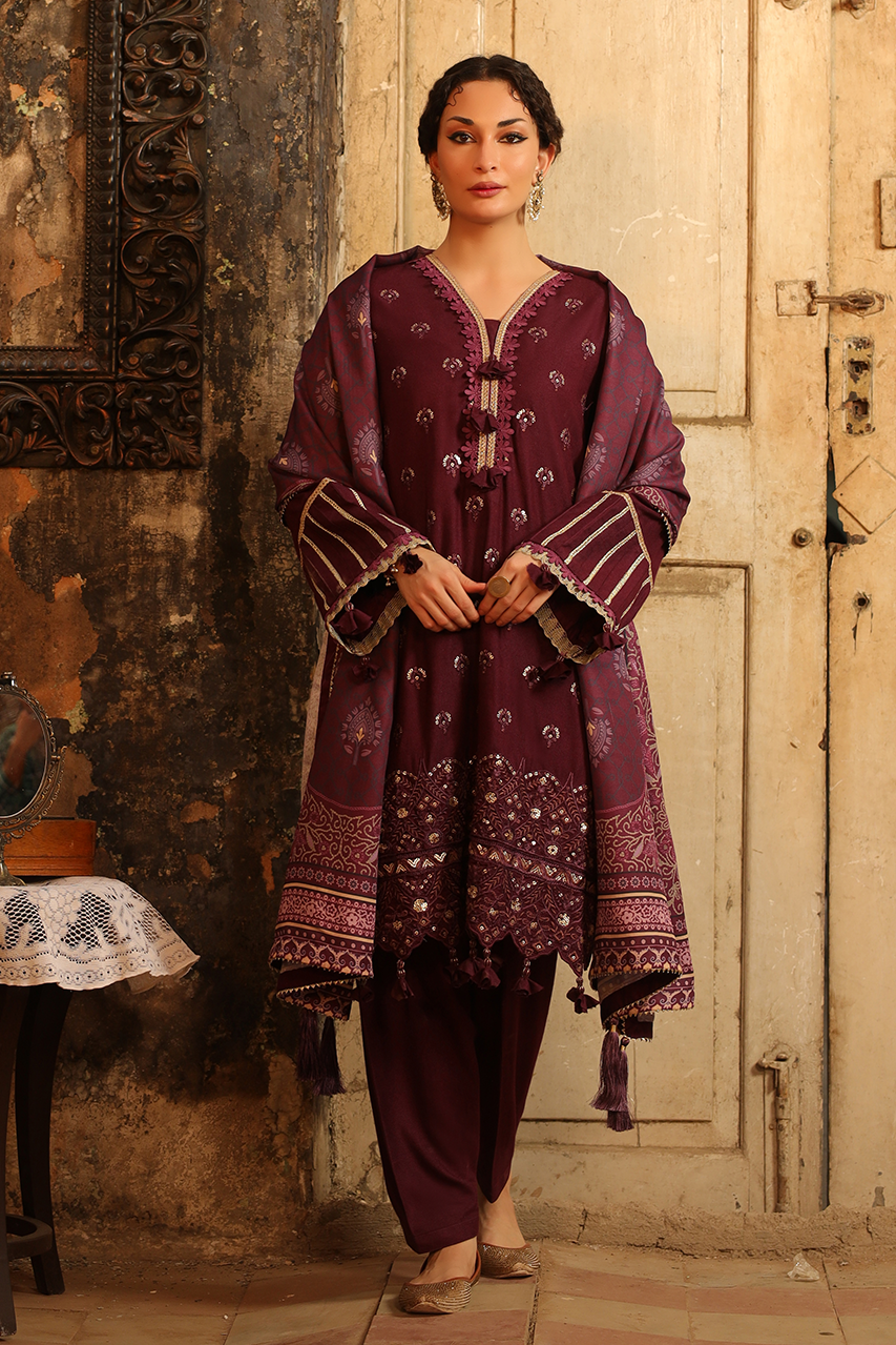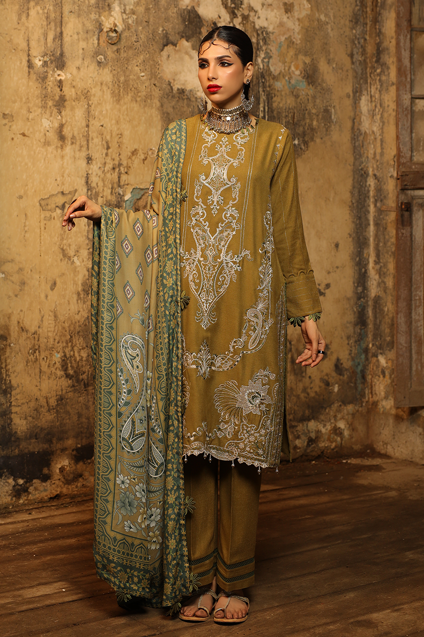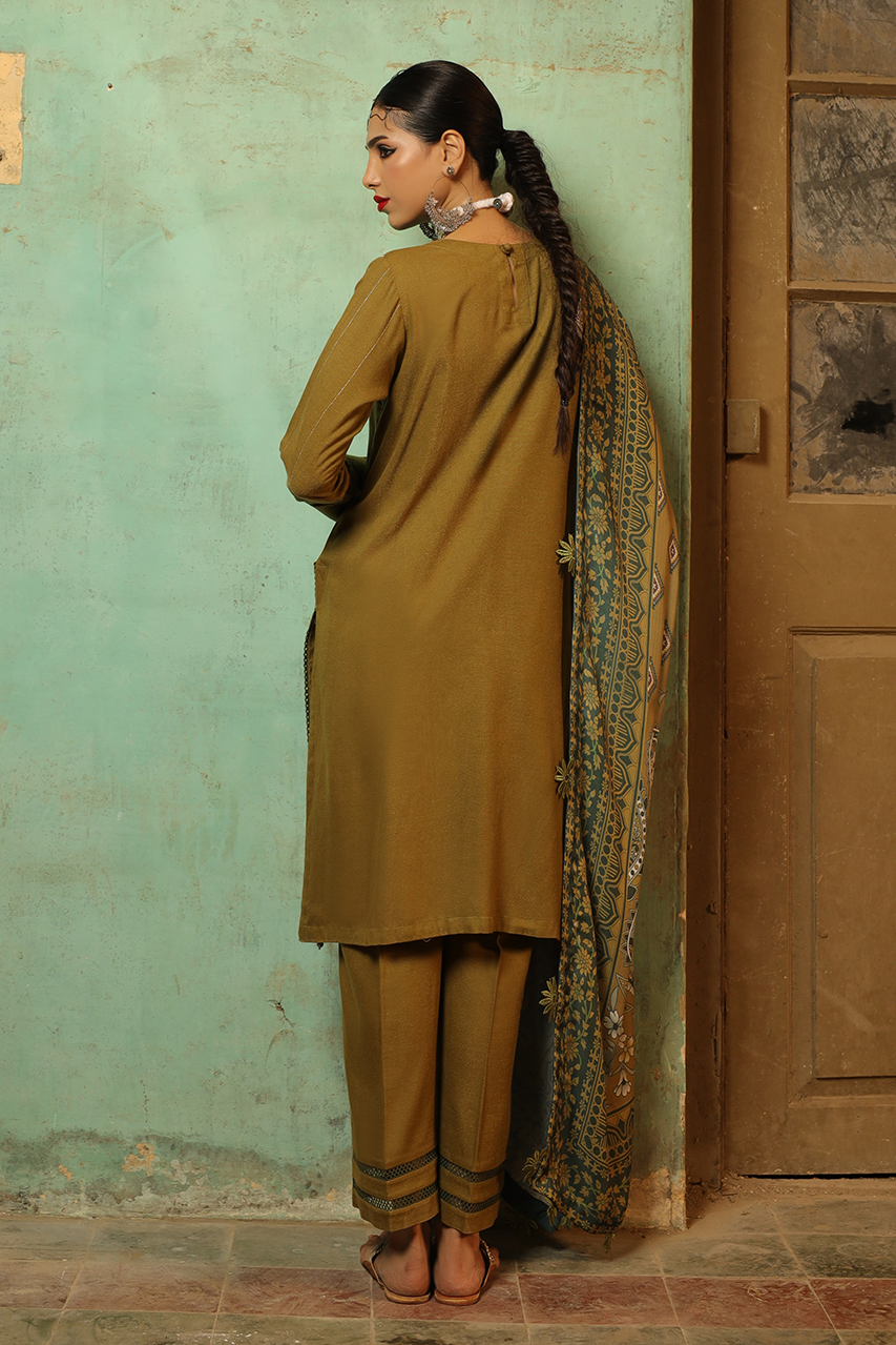 3pc Unstitched Winter Embroidered Suit With Shawl Peach Leather (PLEMB-08UT) - SalitexOnline