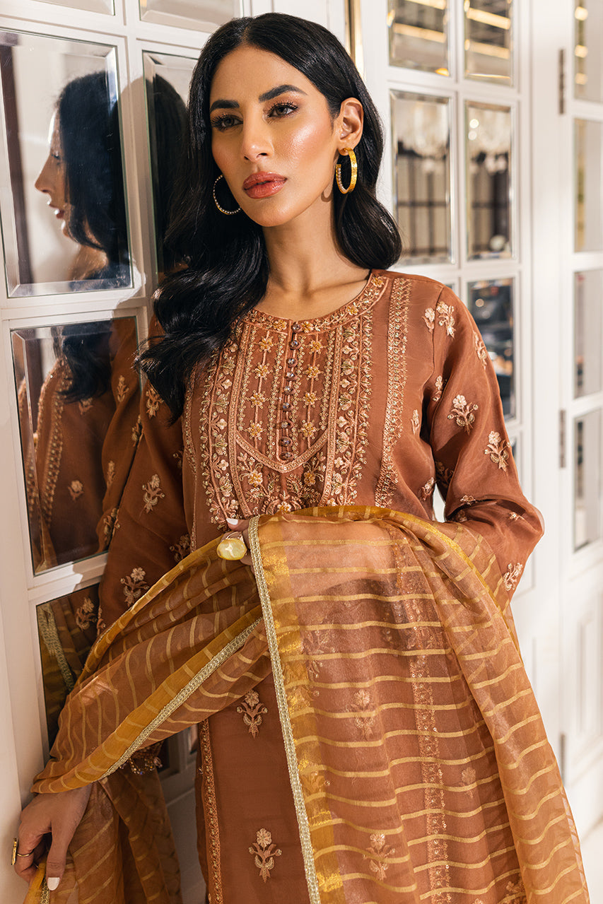 3pc Unstitched Winter Embroidered Suit With Shawl Peach Leather (PLEMB-07UT) - SalitexOnline