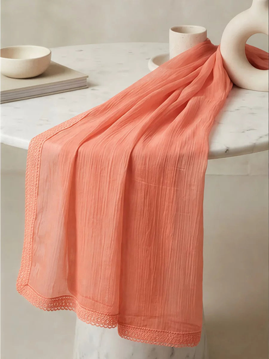 Elevate your style with our stunning plain chiffon dupatta in a rich maroon hue, beautifully adorned with intricate embroidered lace detailing on all four sides. This versatile accessory is perfect for enhancing both traditional and contemporary outfits, adding a touch of elegance and sophistication to your look.