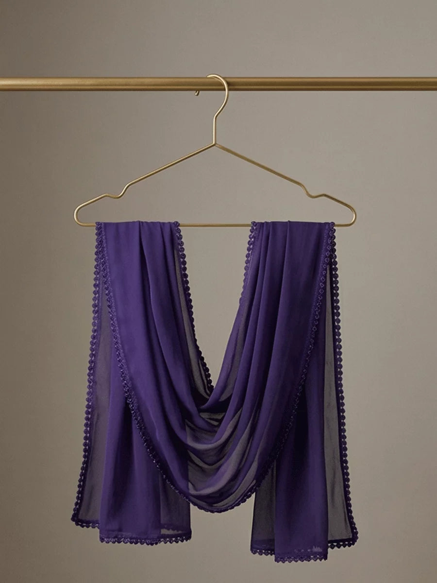 Elegant Chiffon Dupatta with Side Embroidered Lace.