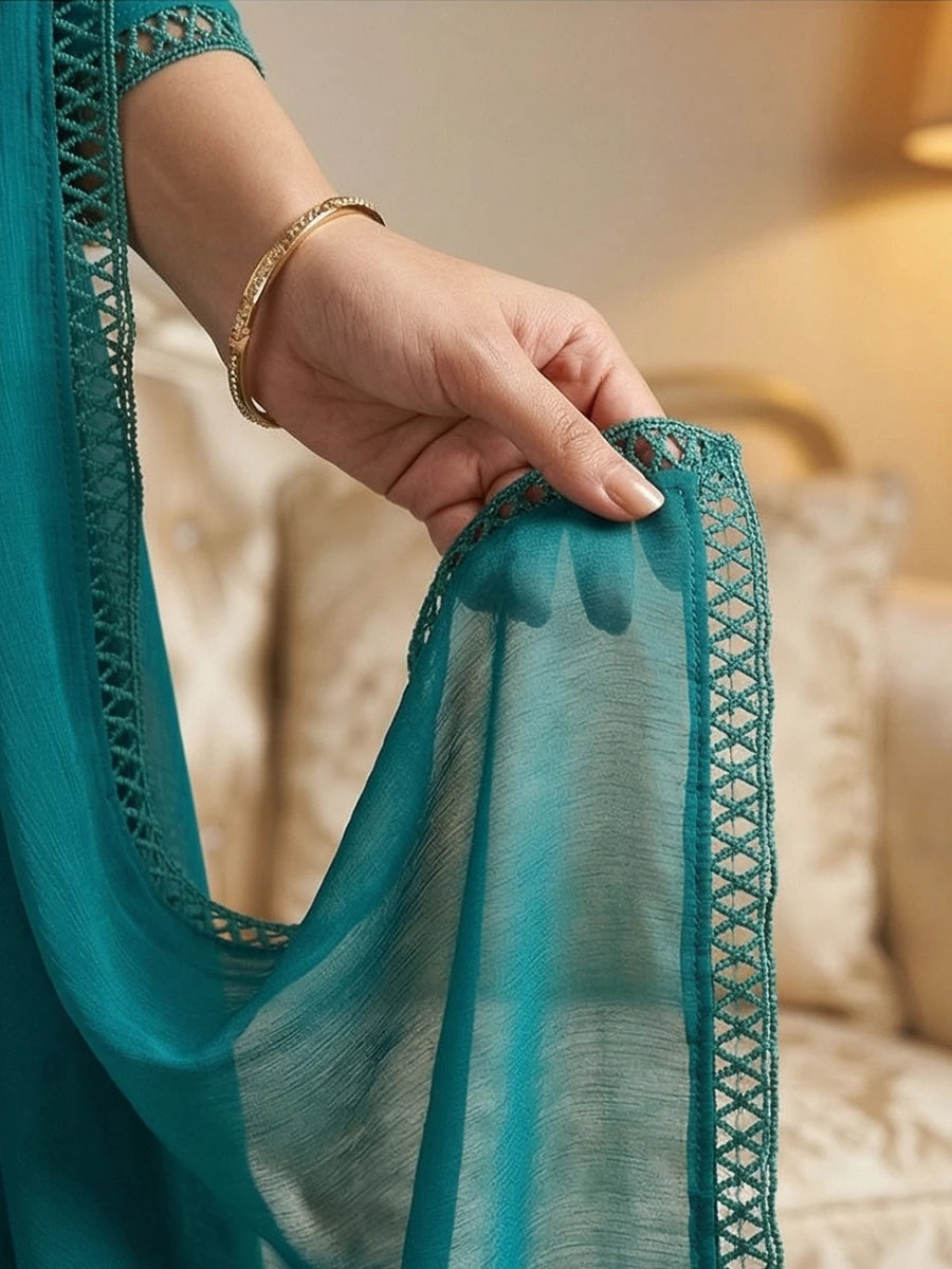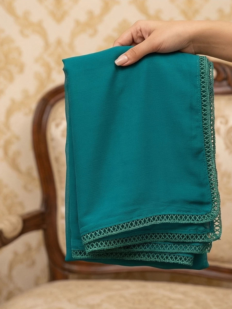 Elegant Chiffon Dupatta with Side Embroidered Lace.