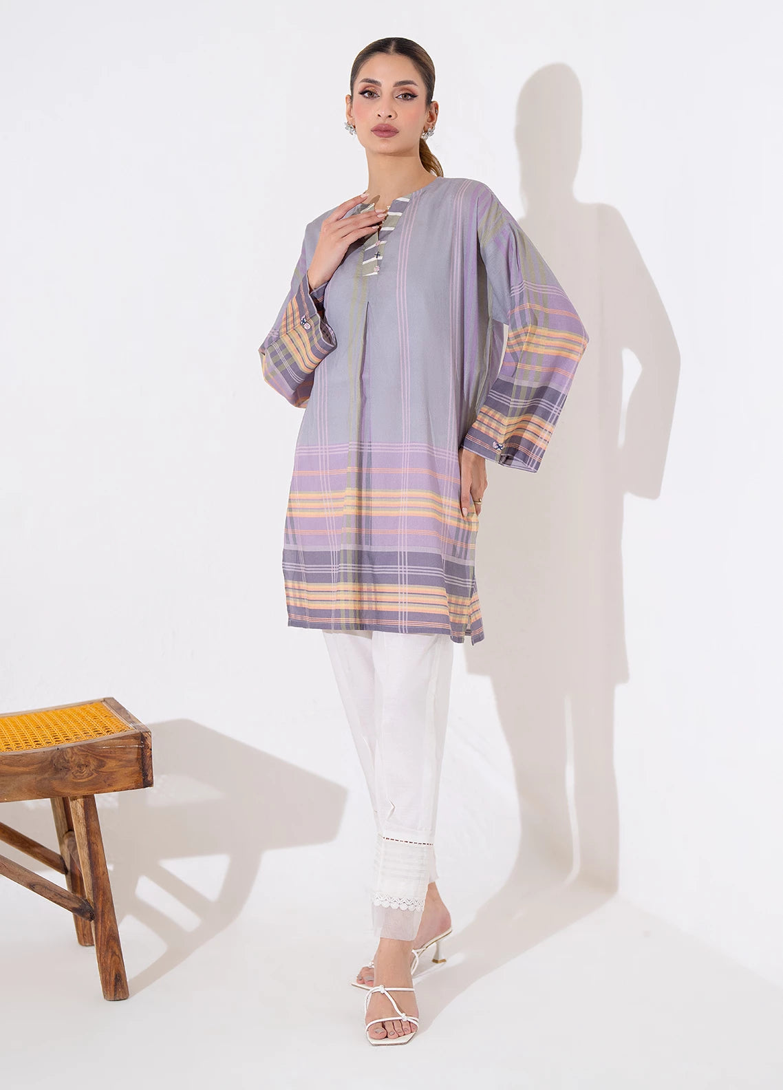 1pc round neck with placket short length.