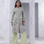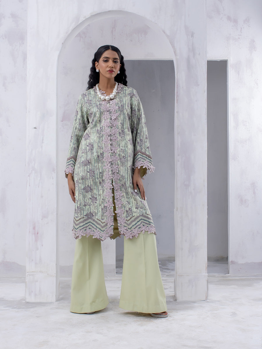 Elevate your style with our Stitched Printed Dobby Silk Lawn Kurti, a perfect blend of sophistication and comfort.
