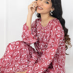 Straight shirt with slit along with buttons paired up with printed pants.