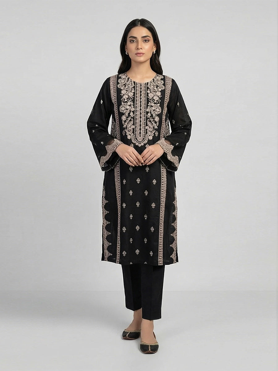 2PC Stitched Cambric Embroidered Suit (PML2PEC238)