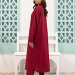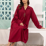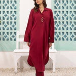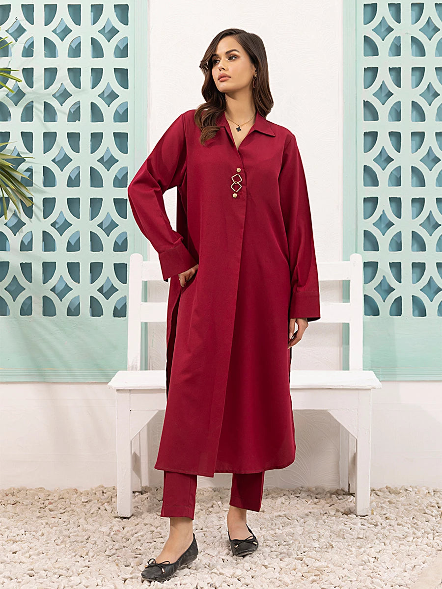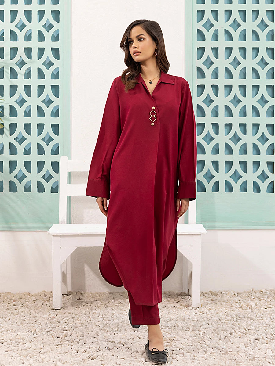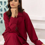 Shirt collar with side pleats * round hemline *detailing on neckline.