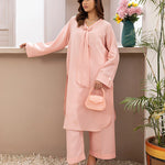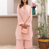 2pc *chinese collar with bow tie *embellishment on neckline and sleeves * straight shirt with culottes