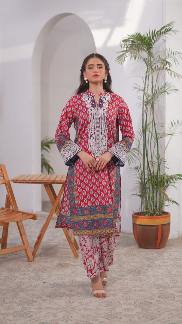2PC Stitched Cross Hatch Embroidered Suit (SPL2PEC039)