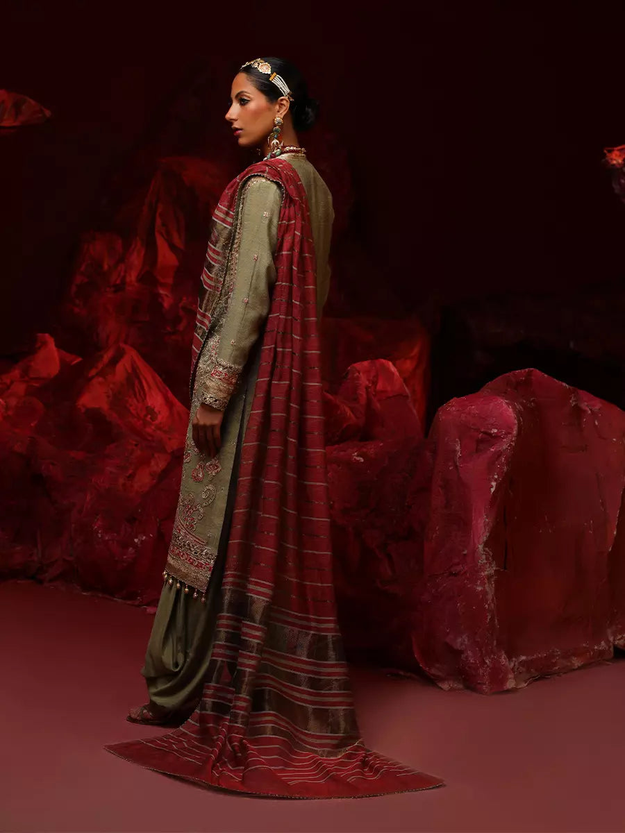 3PC STITCHED FESTIVE EMBROIDERED SUIT