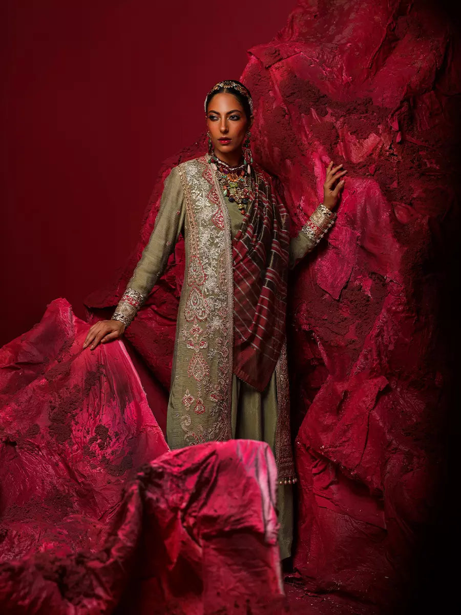 Introducing our luxurious pale green dress, adorned with royal Gotta embroidery in fluorescent pink and blue. This elegant ensemble exudes effortless charm and sophistication. The intricate Gotta embroidery beautifully embellishes the bodice, sleeves, and hemline, creating a mesmerizing pattern. The high-quality fabric drapes gracefully, ensuring both comfort and durability. Complete with a Karandi dupatta, this dress is perfect for weddings, festive celebrations, and special occasions. Embrace the beauty of traditional craftsmanship and contemporary style with this stunning pale green dress. Stand out from the crowd and radiate confidence and grace.