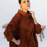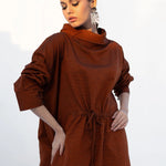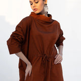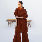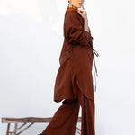 2pc mock neck shirt gathered waistline with adjustable tussle strings tussle string paired with bell bottom *Mid length shirt.