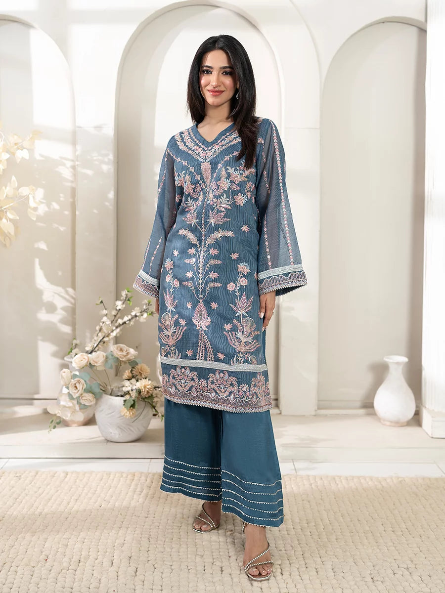 2PC Stitched Khaddi Net Embroidered suit (WRS2SA24AN28)