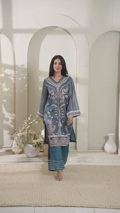 Shirt Details: Embroidered khaadi net shirt with boat neck.