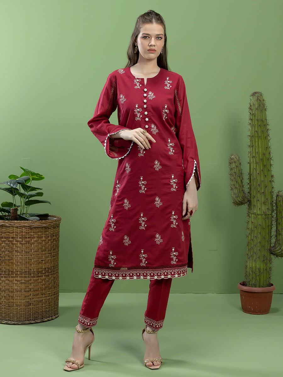 2PC Unstitched Dyed Embroidered Shirt & Trouser
