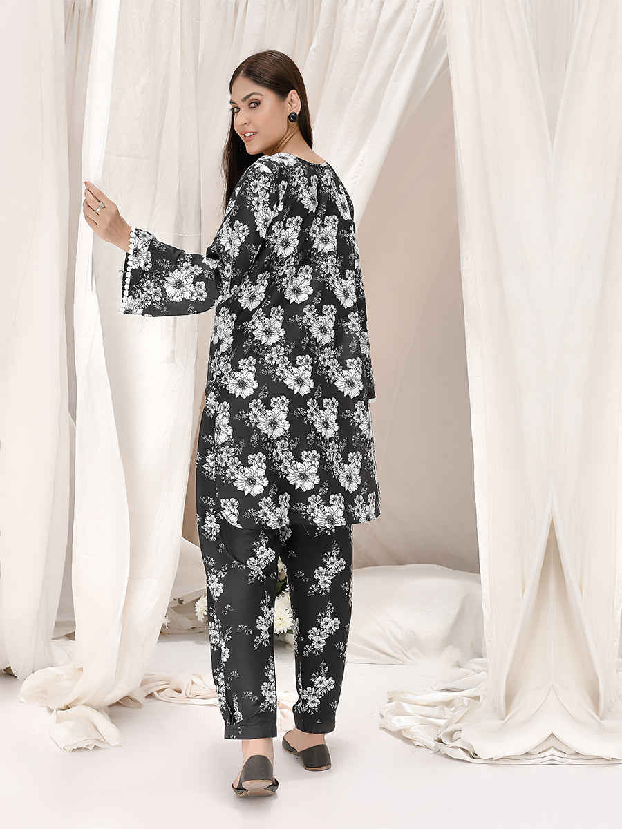 2pc - Unstitched Printed B&W Shirt & Trouser