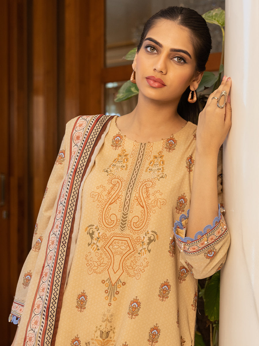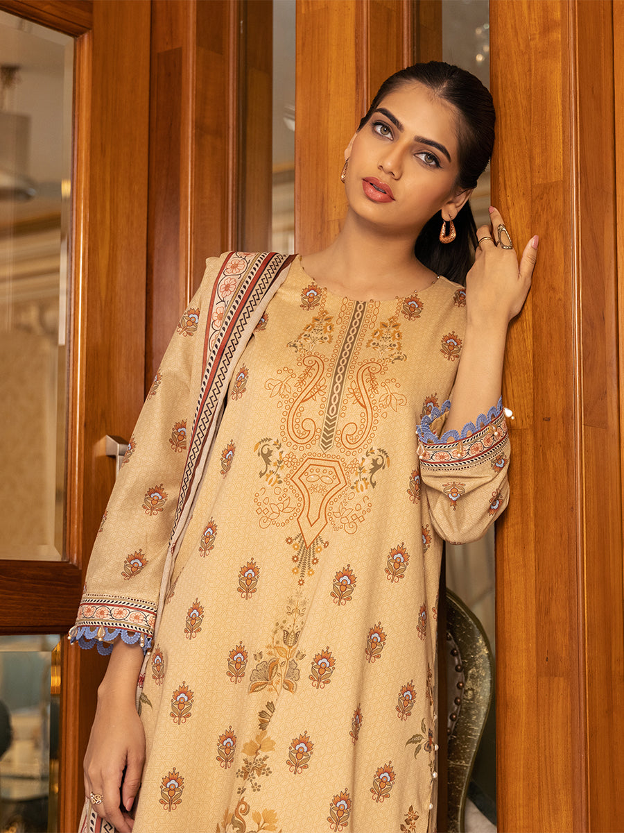 2pc Unstitched - Printed Lawn Shirt with Dyed Cambric Trouser