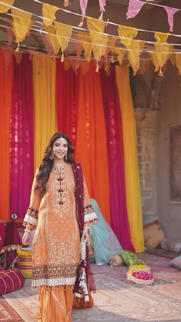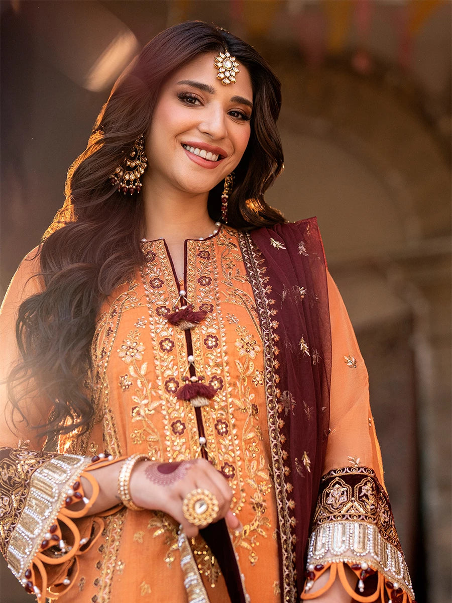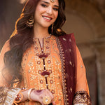 Celebrate tradition with our 3PC Unstitched Festive Embroidered Suit. Designed with meticulous embroidery on premium fabric, this outfit offers versatility and sophistication, making it an ideal choice for any special occasion.