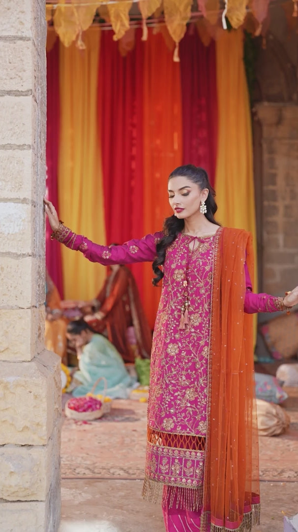 Note: Extra tassels, laces and Boxes for shoot purpose wouldn't be included in Unstitched Dresses, They are only for Model Shoot Purpose.