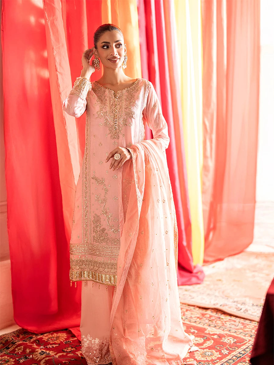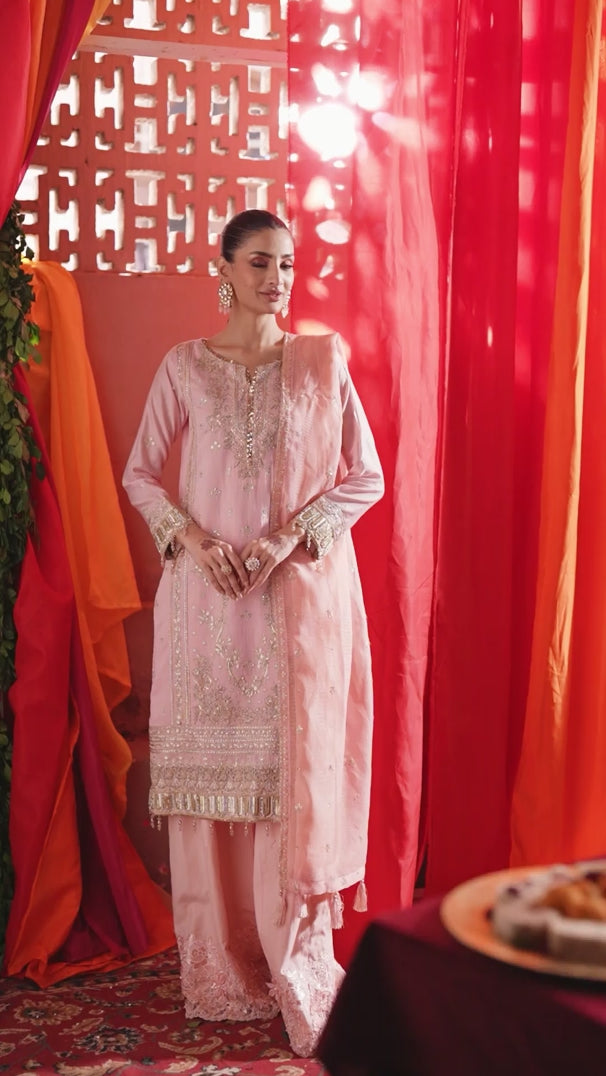 Celebrate tradition with our 3PC Unstitched Festive Embroidered Suit. Designed with meticulous embroidery on premium fabric, this outfit offers versatility and sophistication, making it an ideal choice for any special occasion.