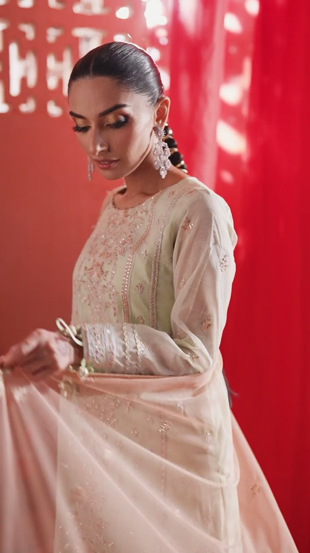 • Front: Embroidered Organza Centre, Left & Right Panels (0.34 M each).