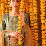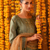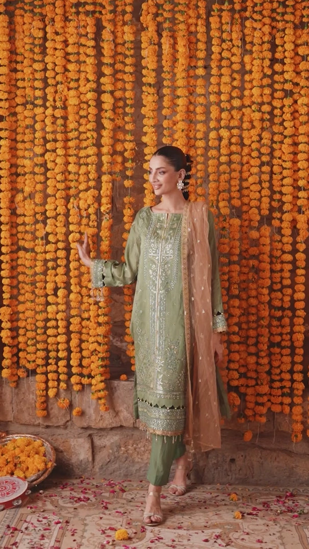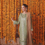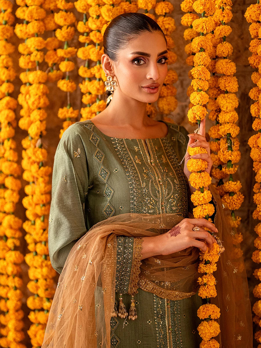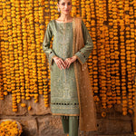 Celebrate tradition with our 3PC Unstitched Festive Embroidered Suit. Designed with meticulous embroidery on premium fabric, this outfit offers versatility and sophistication, making it an ideal choice for any special occasion.