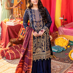 Celebrate tradition with our 3PC Unstitched Festive Embroidered Suit. Designed with meticulous embroidery on premium fabric, this outfit offers versatility and sophistication, making it an ideal choice for any special occasion.