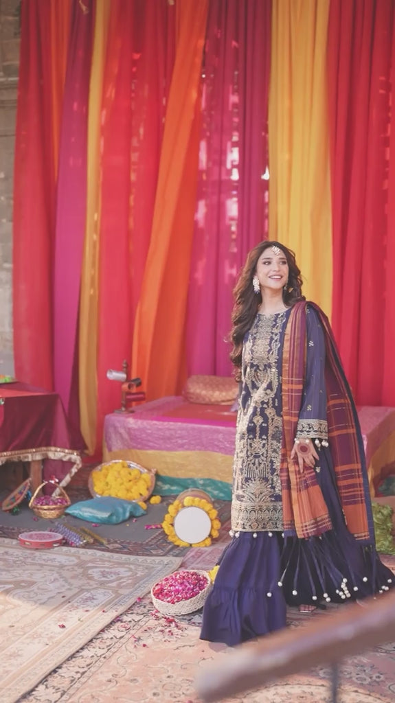 Note: Extra tassels, laces and Boxes for shoot purpose wouldn't be included in Unstitched Dresses, They are only for Model Shoot Purpose.
